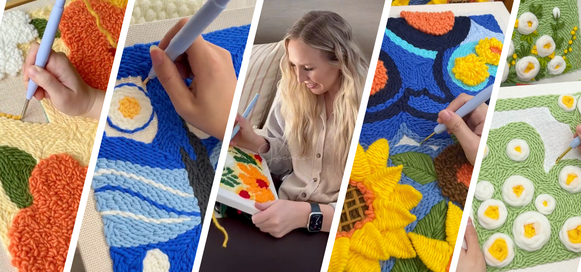 Transform moments of stress into gentle calm, one soothing stitch at a time, with Jaenea punch stitching kits.